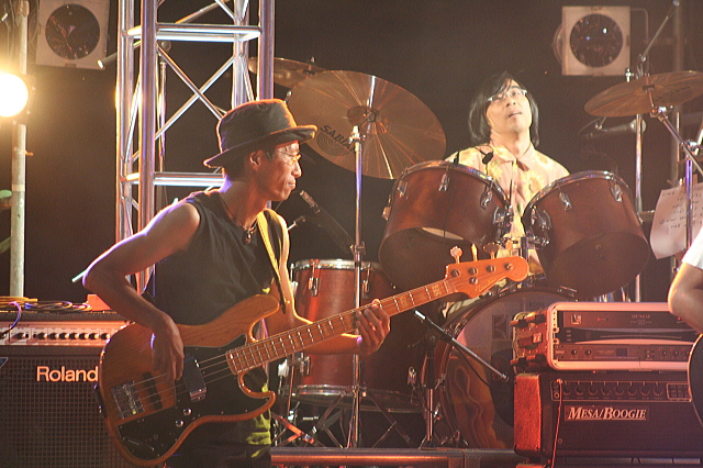 ギターのイスさん、ベースでこばちゃんの先輩・徳井さん、ドラムがハットリ先生、あとはパーカッションやら金管楽器系なんですが、今回は徳井さんの意向でベーシストのマーカス・ミラーを意識した曲調になったらしい。